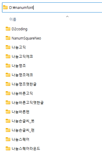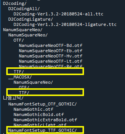 그리고 한번에 모든 파일을 설치하려면 각 폰트 별 폴더를 찾아가고, 폴더 안에서 ttf 폴더를 눌러야하는 불편함이 있었어요.