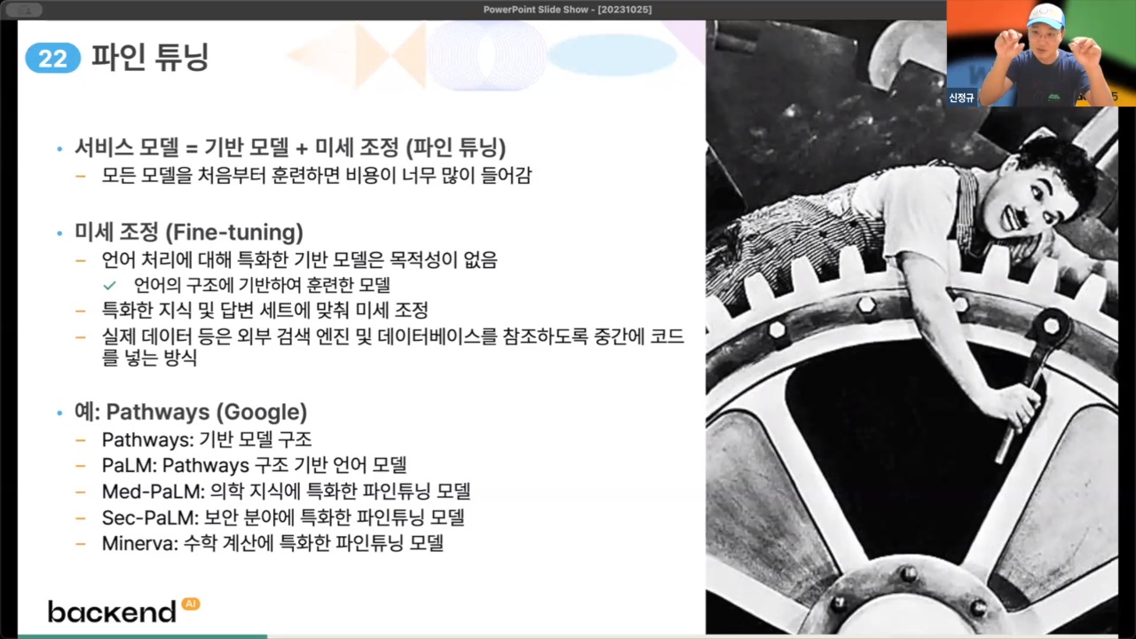 - 파인튜닝 : 기반 모델을 만드는데는 엄청난 자원이 소모됨(~수천억원), 따라서 서비스 용 모델은 기반 모델을 개발해 두고 이를 바탕으로 각 용도에 맞게 미세 조정하여 개발