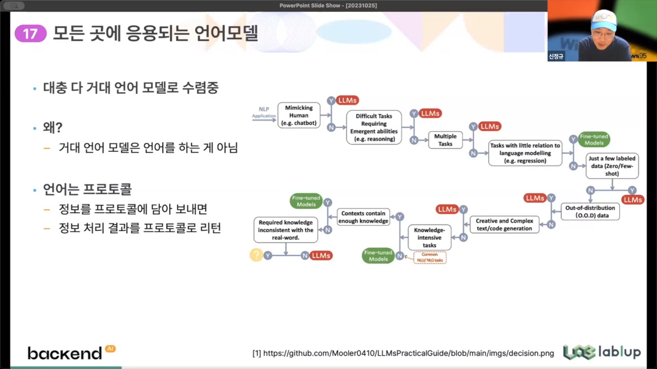 - 거대 언어 모델로 수렴 중 : 거대 언어모델은 언어를 하는 것이 아님, 정보를 프로토콜에 담아 보내면 결과를 프로토콜로 리턴하는 구조로 이루어져 있음