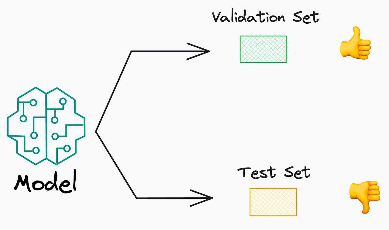 이는 데이터의 운이 좋은 무작위 분할로 인해 발생할 수 있으며, 이로 인해 검증 세트에서는 매우 잘 수행되지만 새로운, 보이지 않는 데이터에서는 제대로 수행되지 않는 모델이 생성됩니다.